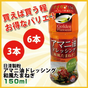 アマニ油ドレッシング ごま【3本セット】日本製粉:(正規品)ドレッシングでアマニ油を簡単に摂ろう!【RCP】^^価格: 1,030円 レビュー評価:4.44 レビュー数:9 アマニ油ドレッシング・ごま/日本製粉手軽なプラスチックボトルにリニューアルしました!説明マアニ(亜麻仁)は、紀元前から欧州では健康維持に役立つ食品として親しまれてきました。αリノレン酸がたっぷりのアマニ油と香り豊かなすりごまでおいしく仕上げたこくのあるごまドレッシングです。温野菜や鶏肉のサラダによく合います。ドレッシングでアマニ油をもっと手軽に。もっとおいしく。特徴αリノレン酸は体内で作ることができないn?3(オメガ3)脂肪酸で、健康維持にかかせない必須脂肪酸として知られています。一部が体の中で、EPA(エイコサペンタエン酸)やDHA(ドコサヘキサエン酸)へ変わります。大さじ1杯(15g)にα (更新日時:2014/09/10 10:37)